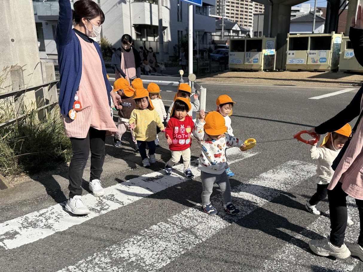 道中は安全に気を付けながら楽しく歩きました✨横断歩道は手をあげて渡ります♪