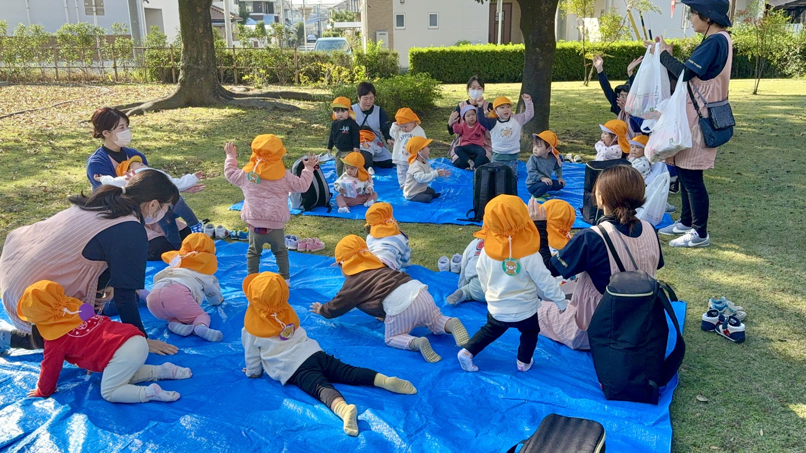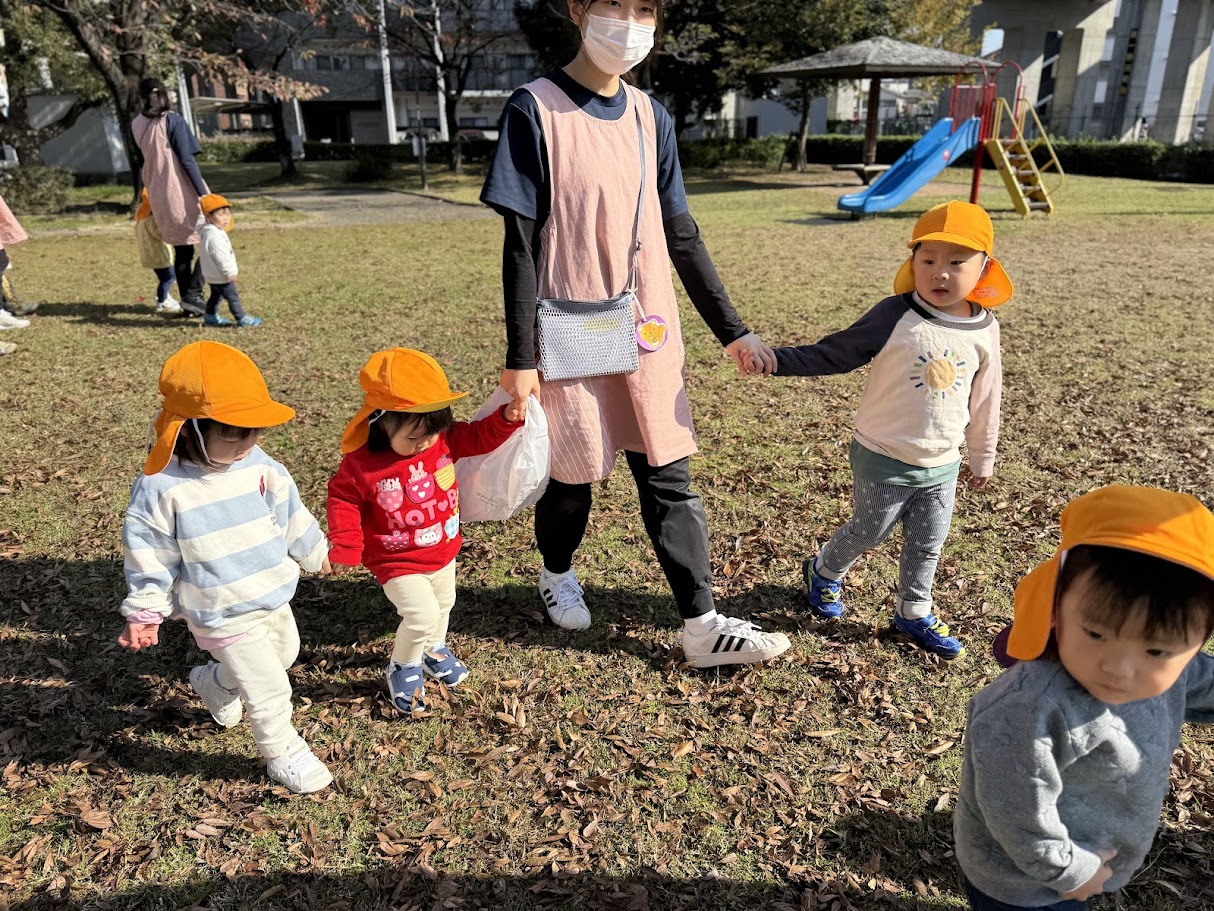 保育園では、みんなで北東山公園までえんそくごっこに行きました👣
