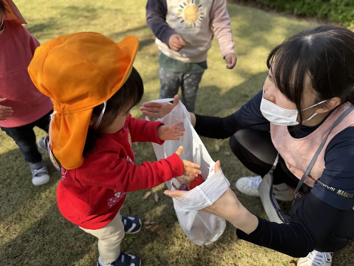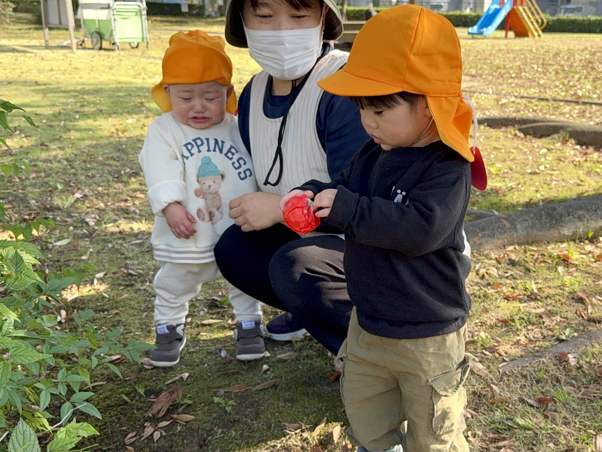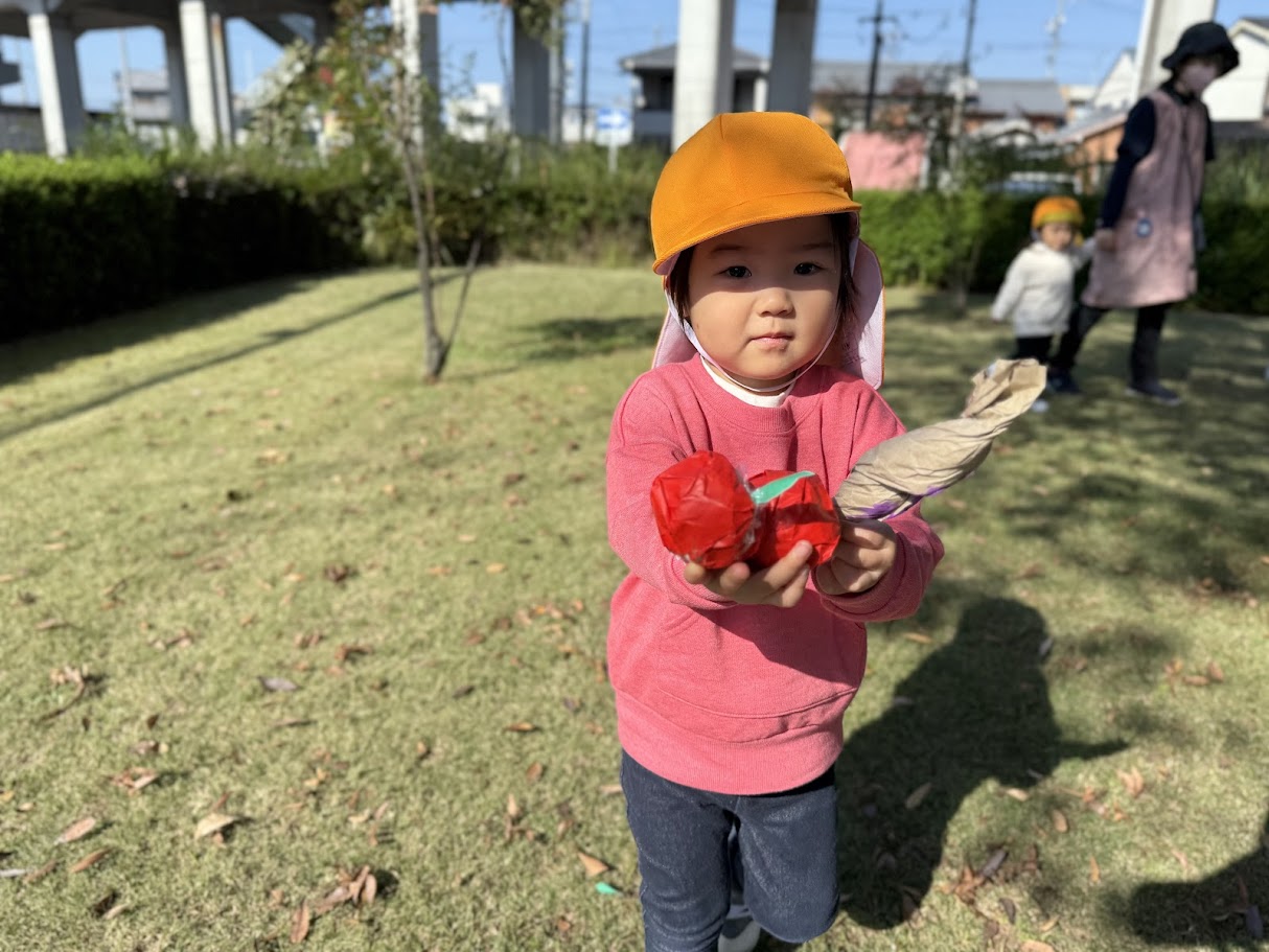 見つけた果物は、袋に入れて保育園に持帰ります✨