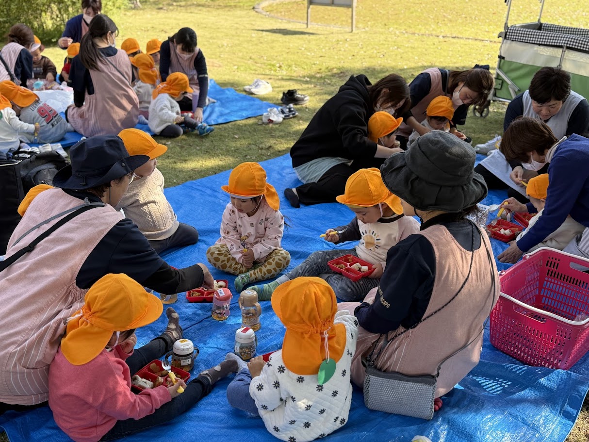 暖かい日差しと、少しひんやりとする秋の風を感じながら、みんなで楽しくお弁当を食べました💕