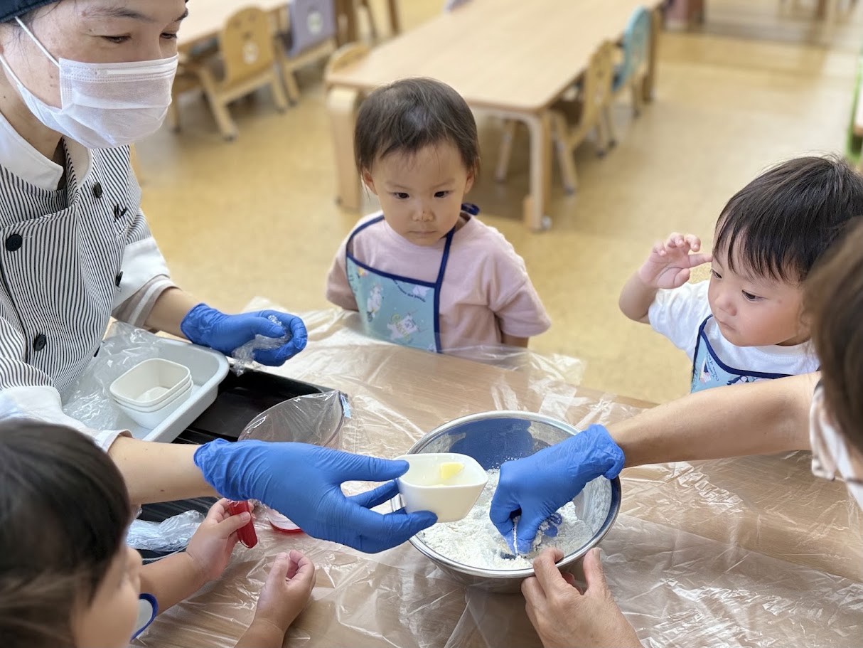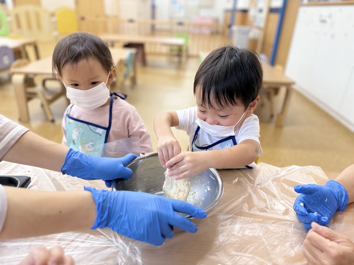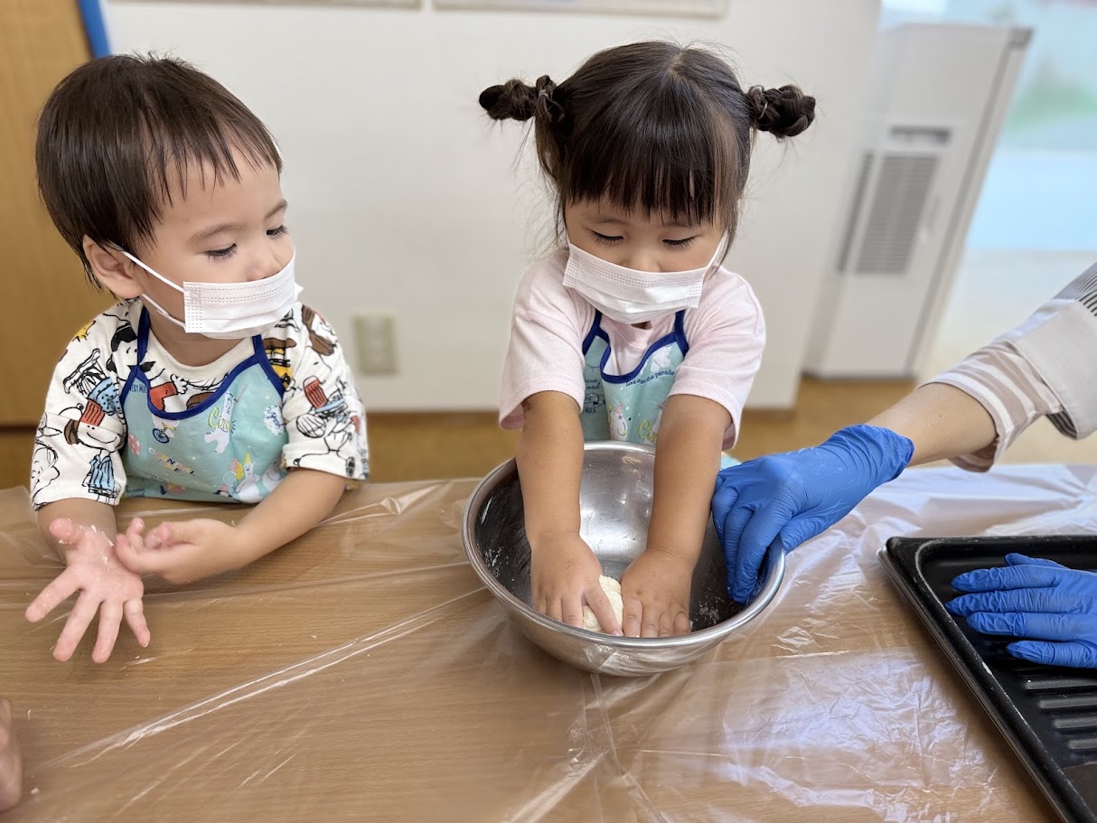10月の食育は、つばめ組さんがパン作りにチャレンジ!